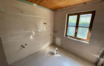 A nagyobb lakóház téglaépítésű, bitumenes zsindely fedésű. A 80-as években nyerte el mostani formáját, egy előzményépülethez történő hozzáépítéssel. Fűtése a pincében elhelyezett gázkazánnal és opcionálisan egy vegyestüzelésű kazánnal megoldott. A hőleadás a helyiségekben radiátorokkal történik. A ház optimális elosztású, a lakrész továbbiakban is jól alakítható. A földszinten előtér, konyha, fürdőszoba, étkező, kamra és egy 16 m2-es szoba, valamint egy változtatható funkciójú 12 m2-es műhely/tároló helyiség található.