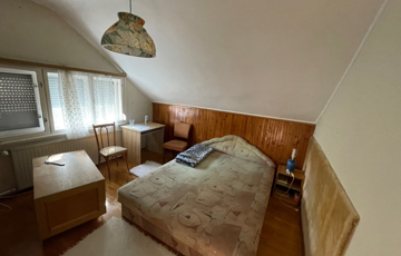 Az emeleten pedig két tágas hálószoba, egy nappali 2,64 m2-es erkélykapcsolattal, fürdőszoba és konyha van kialakítva. A ház két külön bejáratú pincével rendelkezik, az egyikben került elhelyezésre a két kazán.