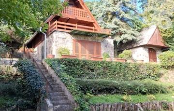 Leányfalun a hegyoldalban eladó egy hétvégi ház a Dunakanyar panorámájával!
