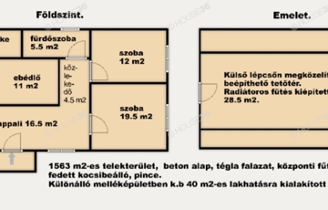 - 1563 m2-es telekterület, különálló felújítandó lakőrész k.b: 40 m2.