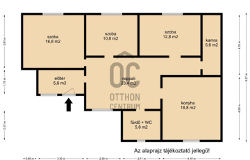 - Helyiségek: előtér, 3 szoba, nappali, konyha-étkező, kamra, fürdő-WC.