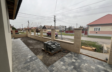 - a ház körüli kerítés, a térkövezett járdák illetve a gépkocsibeálló ami szintén térkővel burkolt, az ár részét képezi