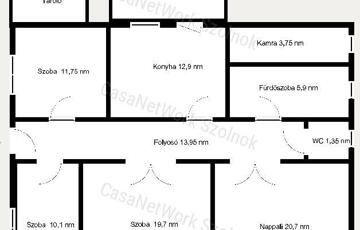 <p>A <strong>Szolnoki CasaNetWork ingatlaniroda</strong> megvételre kínál <strong>Szolnokon egy 100 m<sup>2</sup>-es, 4 szobás, tégla építésű családi házat.</strong></p><p>Az ingatlan jellemzői:</p><p>- 1982-ben épült, téglából,</p><p>- a telek mérete 433 m<sup>2</sup>, sarki fekvésű,</p><p>- a szobák laminált parkettával borítottak, </p><p>- nappali 20,7 m<sup>2</sup>, a szobák 19,7; 10,1 és 11,75 m<sup>2</sup>-esek,</p><p>- a konyha tágas, járólappal burkolt, melyből egy 16 m<sup>2</sup>-es, fa szerkezetű, cseréptetővel ellátott teraszra lehet kilépni,</p><p>- fürdőszoba és a WC külön helyiségben található,</p><p>- a fűtés gázkazánnal és kandallóval megoldott, a melegvíz ellátás a kazánon keresztül egy 120 l-es melegvíztárolóval áll rendelkezésre,</p><p>- a középső szobában egy 3,5 kW-os klíma berendezés található,</p><p>- 2<strong>017-ben a villany- (32 A), víz- és csatorna vezetékek kicserélésre kerültek, </strong></p><p>- a ház 10 cm-es nikecell <strong>szigetelés</strong>t kapott, új külső nyílászárókat, valamint a tető teljes héjazat cseréje megtörtént, a csatornával együtt,</p><p>- az udvarban 2 beállásos garázs található, melyet egy távirányítású elektromos kapun keresztül megközelíthető,</p><p>- családok számára kiválóan alkalmas a méretei és tágas terek miatt.</p> <p> Amennyiben a fenti <strong>155806408-</strong>as azonosító számú eladó családi ház, vagy bármely kínálatunkban található ingatlan felkeltette érdeklődését, kérem hívjon bizalommal!</p><p>/A hirdetésben szereplő információk a megbízótól kapott adatok alapján készültek./</p><p>Irodánk teljes körű szolgáltatással áll ügyfelei rendelkezésére: hitelügyintézés, ügyvédi szolgáltatás, ingatlan értékbecslés, energetikai tanúsítvány készítése.<br /></p><p><strong>CasaNetWork - Ingatlanban otthon vagyunk!</strong></p>