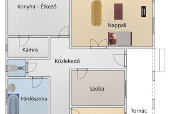 <p>Praktikus, átgondolt elrendezés: A földszinten tágas nappali, 2,5 szoba, külön fürdőszoba és WC, világos konyha étkezővel, kamra, közlekedő, fedett 16 nm-es terasz és hangulatos, 10,6 nm-es tornác biztosítja a kényelmet.</p>