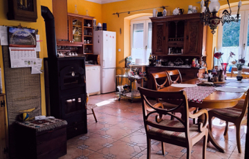 A ház 250 négyzetméteres, négy tágas szobája, társalgója, galériája különleges hangulatot nyújt.