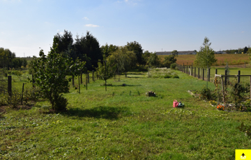 • ásott kút, fiatal termő gyümölcsfák a kertben.
