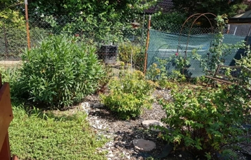 A kert gondozott, dìsznövenyek, gyümölcsfak stb.