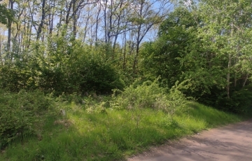 Beépíthetőség mértéke 30%, a telek dombos környezetben terül el, jelenleg erdősült. Közművek közvetlenül a telekhatáron.