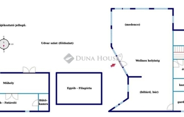 Ugyancsak ezen a szinten került kialakításra a több, mint 100 nm-es wellness helyiség 6x3 nm-es beltéri fűthető medencével (ami betonozott és csempézett), biliárd teremmel, bársarokkal, társalgóval.