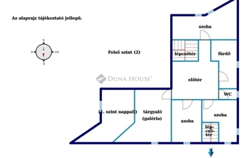 A felső szinten kialakításra került 3 hálószoba, egy a galérián berendezett dolgozó szoba, fürdő, WC. Az egyik hálóból csigalépcsőn jutunk fel egy további toronyszobába.