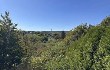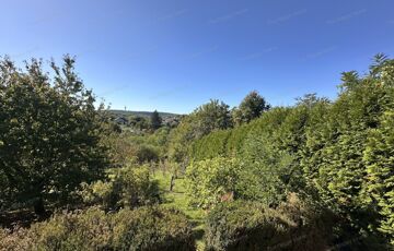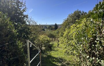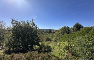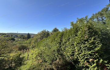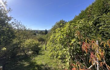 - Tágas, részben sík telek gyümölcsfákkal és kilátással