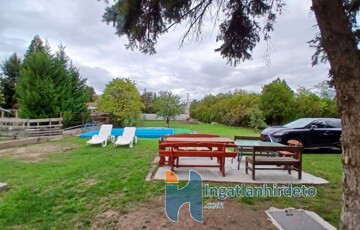 Elhelyezkedése: Belterület Tájolása: Dél-nyugai tájolású Állapota: Jó Komfort besorolása: Dupla komfortos Építési éve: 2005 Alapterülete: 240 m2 Telekterülete: 1 800 m2 Szobák száma: 3 + 1 szoba Közművek: Gáz, Víz, Villany, Csatorna Gázellátás: Vezetékes Vízellátás: Vezetékes víz Melegvíz-ellátás: Gázkazán Áramellátás: 230V Fűtés módja: Gáz Fűtés típusa: Cirkó Homlokzat állapot: átlagos Építési mód: Tégla Tető formája: Magas Tető anyaga: Cserép Parkolási lehetőség: Telken Kilátás: Utcafronti kilátás, Udvari kilátás Napelem: Nincs Jellemzői: Csendes környék, Jó közlekedés, Redőny, Légkondicionáló, Étkező, Udvari terasz, Amerikai konyha, Beépíthető tetőtér, Beépített szekrény, Beépített konyhabútor, Autóbeálló, Kert, Kerítés, Riasztó, Parketta burkolat, Medence, Saját fúrt kút, Térkő, Zöldterület, Jó közbiztonság, Beépített tetőtér Energetikai besorolás: Nincs adat Egyéb jellemzők: Erkély, Terasz, Melléképület, Pince, Tetőtér Tv, Internet: Kábeltévé, Internet, Vezetékes telefon Közelben: Iskola, Óvoda, Autóbuszállomás, Helyi autóbuszállomás, Orvosi rendelő, Bolt, Gyógyszertár, Autópálya Rezsi költség(Ft): 70000 Terhelések: Tehermentes ingatlan Eladásra vonatkozó információk: Az ár tartalmazza a teljes berendezést, Azonnal beköltözhető