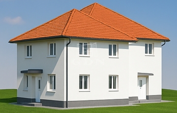 MODERN, HŐSZIVATTYÚS, ÚJÉPÍTÉSŰ, KULCSRAKÉSZ IKERHÁZ zöld környezetben.