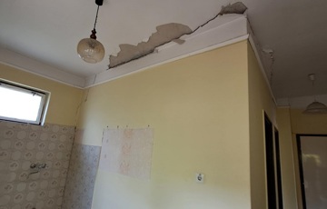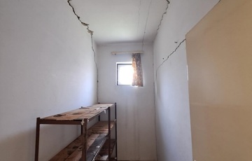 Konyha-étkező-kamra közötti válaszfalak a betonfödémes teher miatt kicsit megsüllyedtek. Szerkezeti problémát nem okoznak mivel csak válaszfalak.