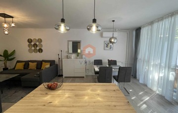 72 m2 földszinti elhelyezkedés + 20 m2-es déli fekvésű terasz, igényes kerti bútorokkal, nyugodt, csendes környezetben!
