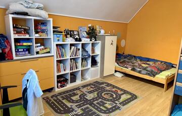 Az épület 1996-ban épült, szuterén + lakószint + tetőtér kialakítású, így tágas, mégis praktikus életteret kínál.