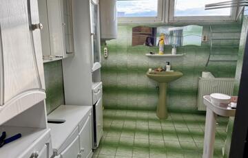 A közlekedőből egy tágas fürdőszoba és egy hálószoba nyílik.