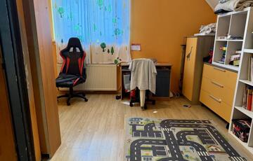 A tetőtérben: előtér beépített szekrényekkel, 2 hálószoba (az egyik erkélyes), fürdő + WC, valamint egy gardróbnak alkalmas helyiség.