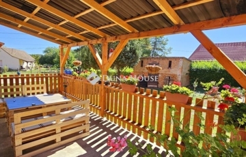 Baksán Pécstől mindössze 16 km-re, eladó egy 126-nm-es, 4 szobás, vegyes falazatú parasztház.Az ingatlanon pár éve az alábbi felújítások történtek:- tetőcsere+30 cm szigetelés- víz és villamos hálózat cseréje-vegyes tüzelésű kazán beépítése-parkettázás-új fürdőszoba és toalett került beépítésre-nyílászárók cseréje-terasz építése-2 beállásos kocsibeálló-szigetelés- 2 db hűtő/fűtő klíma felszerelése.Az ház fűtése vegyestüzelésű kazán és 2 db klíma, a meleg vizet bojler szolgáltatja éjszakai áramról.A 4701-nm-es sík telek kiválóan alkalmas állattartásra vagy növénytermesztésre egyaránt.Ajánlom családosoknak és összeköltözőknek egyaránt, akik szeretnének falusi környezetben élni és szívesen gazdálkodnának.További kérdések, illetve megtekintés miatt kérem keressen bizalommal.