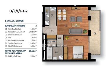 Lakások mérete: 43 nm-es, 1,5 szobás lakástól a 150 nm-es, 5 szobás és a tetőteraszos, exkluzív penthouseig.
