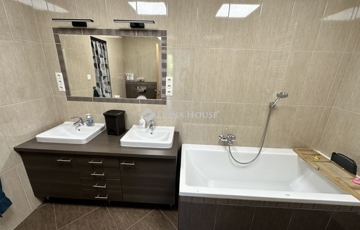 A 2011-ben épült ingatlan kialakítása során nagy hangsúlyt fektettek a kellemes méretű élettér és a jól használhatóság kialakítására. A házban egy tágas amerikai stílusú konyha-nappali található, melyből közvetlenül a közel 50 m2-es teraszra léphetünk ki. Az ingatlan hátsó részében, a nappalitól kicsit távolabb, található a 3 hálószoba és a hálókhoz tartozó 2 fürdőszoba. A házban kialakításra került továbbá mosókonyha, kamra, előszoba és dupla állásos garázs is.