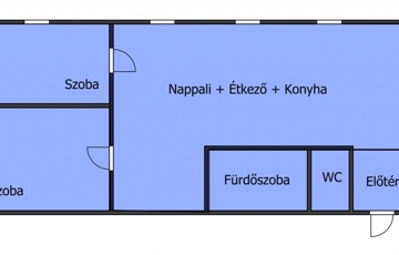 Szobák: 2 külön nyíló szoba, Nappali + Étkező + Konyha, WC, Fürdőszoba, Előtér