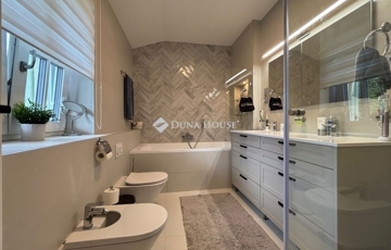 Eladó egy frissen elkészült luxusvilla Budapest II. kerületének Széphalom városrészében. Ritka és különleges, amerikai stílusú építészeti gyöngyszem egy csendes és zöldövezeti utcában. A ház nettó alapterülete 205 nm amihez tartozik egy 50nm-es terasz és minden szobához 4-6 nm erkély. Az ingatlan két lakószintes, a telek 800 m²-es parkosított kertet kínál. A földszinten egy elegáns előtér fogad, ebből belépve található egy tágas, amerikai stílusú konyha, étkező és nappali egy légtérben, amely a családi élet központja.Ezen a szinten került kialakításra egy vendégszoba saját fürdőszobával és WC-vel, valamint egy tároló, egy kamra és a gépészeti helyiség. Egy impozáns lépcsőn felérve az emeleten három erkélyes hálószoba található, mindegyikhez saját fürdőszoba és WC tartozik, két hálószobához pedig külön gardróbszoba is kapcsolódik. Ezek mellett egy mosókonyha/háztartási helyiség és egy közlekedő is helyet kapott itt. Az ingatlan különlegességét tovább fokozzák az extra felszereltségek, mint például riasztó, központi porszívó, IP kamerarendszer, robot fűnyíró, Daikin hőszivattyú (H-tarifa), távvezérelhető padló és mennyezet fűtés/ - és hűtés, ami helyiségenként szabályozható, valamint vízlágyító. A csodálatos kertről sem feledkezhetünk meg, amely gondosan parkosított és öntözőrendszerrel van ellátva. A kertben található egy fedett gépkocsibeálló 2 autó részére, elektromos kapuval és autótöltő lehetőséggel, illetve egy kültéri műhely/motortároló továbbá egy tágas DNY-i terasz, ami ideális a pihenésre és vendégfogadásra. Ez a ház tökéletes választás azon családok számára, akik az exkluzívitásra és nyugalomra vágynak Budapest egyik legelőkelőbb kerületében, mindezt elegáns környezetben, magas minőségben kivitelezett otthonban szeretnék megtenni.Az ingatlan Széphalom könnyen megközelíthető és nyugodt környezete mellett kiváló infrastruktúrával rendelkezik. A közelben találhatóak neves oktatási intézmények, nemzetközi iskolák, bevásárlóközpont, éttermek, uszoda és sportközpont és nem utolsó sorban a környék tömegközlekedése is megoldott. Ha egy olyan otthont keres, ahová csak a bőröndjét kell hoznia, itt erre is lehetőség van: az ingatlan akár teljes bútorzata is az Öné lehet. Ha felkeltette érdeklődését, keressen bizalommal!