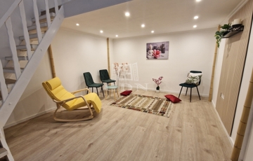 - Szintén impozáns méretű lakó szoba, amely fölött került kialakításra a teljes értékű hálószoba