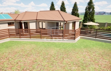 H-004627. Öreghegy, frekventált, kedvelt részén, összközműves építési telken, családiházas környezetben, eladó egy 2025-ben épülő egyszintes, igényes, egyedi kivitelezésű 124 m2 hasznos (br.140m2 ), alapterületű, nappali + 3 szobás , 823m2 privát telekterülettel rendelkező családi ház, garázzsal, terasszal.