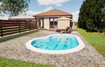 A ház acélvázas könnyűszerkezet, szigetelt, tágas, világos, körbe napozott, minőségi anyagokból készült. A burkolatokat tekintve a szobákban magas minőségű laminált padló, a nappaliban a közlekedőben, valamint a konyhában és a vizes helyiségekben jó minőségű járólap található. A nyílászárók 3 rétegű műanyagból készülnek, hőszigetelt üvegezéssel, rajtuk redőny előkészítéssel. A házban klíma kiépítésre kerül.. A terasz, kényelmes pihenést biztosít. Az utcai kapu elektromosan lesz nyitható. A telek adottságai miatt ( úgynevezett „ nyeles” telek) a ház, és a kert terület teljesen intim nyugalmat biztosít.