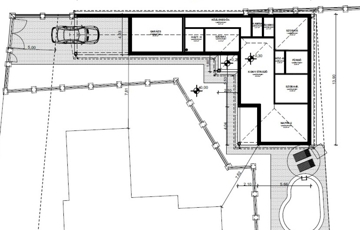 ● Nappali + 3 hálószoba + háztartási helyiség +2 fürdő + kamra +garázs+ terasz.