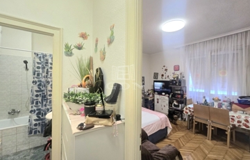 A nappali-háló tágas és világos, utcai kilátással, a házközponti fűtés pedig lapradiátorokon keresztül biztosítja a kellemes meleget a téli hónapokban.