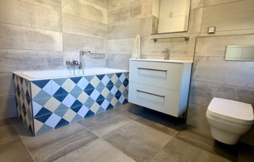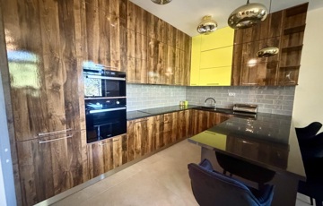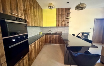 A prémium minőségű beépített konyha minden igényt kielégít – modern gépekkel, letisztult dizájnnal és minőségi anyagokkal. A lakás akár teljes bútorzattal is bérelhető, ízléses, harmonikus berendezéssel.