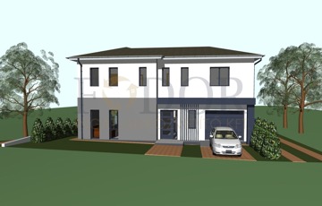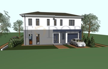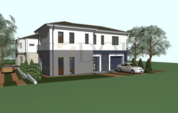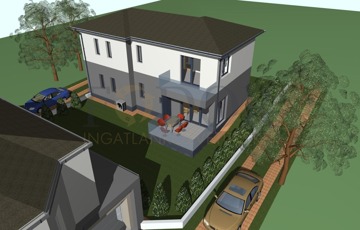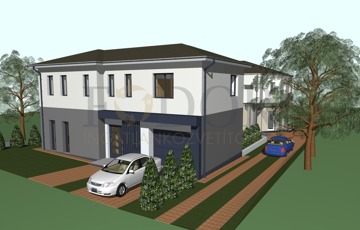 • Telekméret: Önálló családi ház 348 m², Ikerházak külön-külön: 425 m²