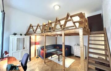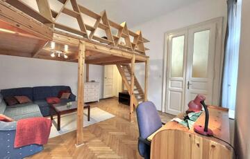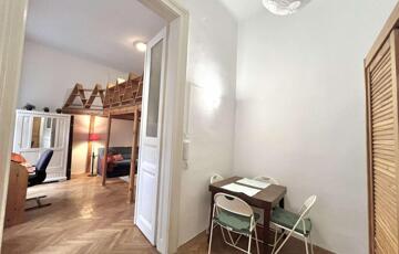 VI.kerület-ben NYUGATI közelében, kulturált környéken, az Eötvös utcában, PATINÁS, JÓL KARBANTARTOTT épületben II. emeleti 44 m2-es galériás jó hangulatú kislakás kiadó november 12-től bútorozottan, gépesítve!