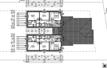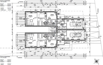 Mindkét ikerház fél nettó 120 nm hasznos alapterületű két szintes épület + mindegyikhez tartozik egy-egy garázs és tároló. A házrészek itt kapcsolódnak egymáshoz.