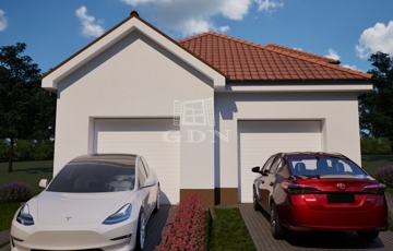 A lakótér nettó 120 m2 + 22 m2 garázs + 17,4 m2 terasz + 2,53 m2 fedett tároló.