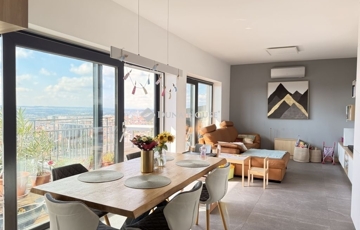 Pécs-Mecsekoldal jól megközelíthető részén, a Havihegyen eladó egy 2021-ben épült, ÖRÖKPANORÁMÁS, belső kétszintes, 80 m2 lakótérrel rendelkező, amerikai konyha nappali+ 2 hálószoba, fürdő-wc, vendég wc elosztású lakás dupla terasszal(+60-m2), 4 m2-es tárolóval, 19-m2-es teremgarázshellyel és akár a teljes berendezéssel együtt!A két lakásos társasház prémium minőségben került kivitelezésre, falai 30-as Porotherm klíma téglából épültek és 10 cm-es grafitos szigetelést kaptak. Fűtése kondenzációs kombi kazánról padlófűtéssel üzemeltethető és rendelkezésre áll szintenként egy-egy GREE 3,5kW-os hűtő fűtő klíma is.Extrák:- vízlágyító és víztisztító berendezés- elektromos redőnyök szúnyoghálóval- süllyesztett tolóajtó- Hörmann elektromos garázskapu- Servo-drive(önzáró) konyhabútor, beépített AEG gépekkel, borhűtő- magas minőségű burkolatok, egyedileg gyártott beépített bútorok, Villeroy & Boch szaniterek, Hansgrohe szerelvények- Szél&fényérzékelős automata napellenző- jakuzzi kiállás- riasztó előcsövezésAz ingatlan gyorsan költözhető!