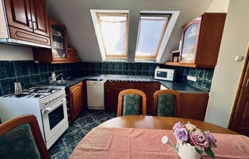 Az ingatlan elosztását tekintve konyha-étkező, nappali, fürdő,-wc, spájz, előtér valamint a tetőtérben kialakításra került 1 hálószoba+külön wc.