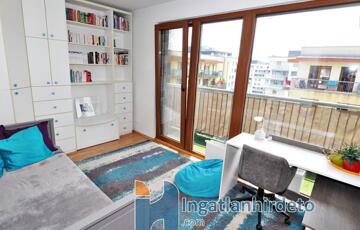 A 2011-ben épült társasház 7 emeletes. A lakás a 7. emeleten található. Lift szolgálja a lakók kényelmét. A 19 lakásos lépcsőház karban- és tisztán tartott. Az udvarban közös park biztosítja a lakók kikapcsolódását és nyugalmát. Az épületben biztonsági kamera és 24 órás őrszolgálat található.