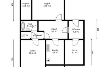 A lakáshoz tartozik a tetőtérben egy kialakításra váró 46 m2 terület, amire megvannak az engedélyek és két szoba és egy fürdőszoba kialakítható. Ára további 25 Mft.