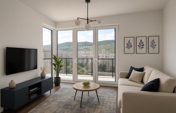 Ár: 170 M Ft • Alapterület: 54 m² + 18 m² erkély • Szobák száma: 2 háló + amerikai konyhás nappali