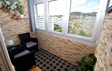 A loggia ideális helyszíne lehet a reggeli kávénak vagy a nap végén egy kellemes pihenésnek, miközben a város látványa tárul elénk.