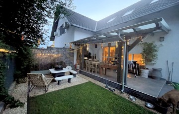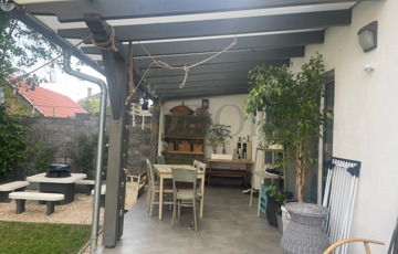 A két fedett terasz (16,4 m² és 4,4 m²) tökéletes helyszín a reggeli kávézáshoz vagy baráti vacsorákhoz. A gondozott, parkosított kert grillezőrésszel, valamint egy 15 m²-es mobil műhellyel és külön tárolóval egészíti ki az ingatlant – tökéletes azok számára, akik értékelik a szabadtér nyugalmát és a funkcionalitást.