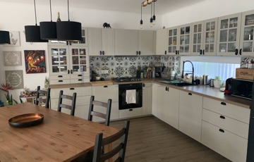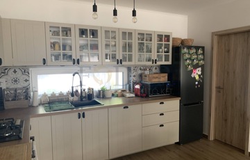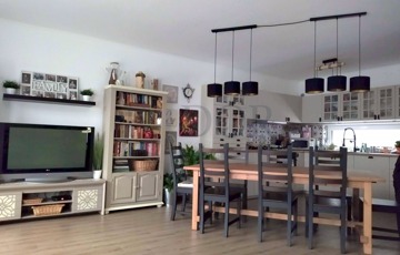 Az 119 m²-es, két szinten elhelyezkedő otthon átgondolt térszervezése ideális választás akár nagyobb család számára is. A tágas, természetes fényben úszó amerikai konyhás nappali a ház szíve, amelyhez teljesen gépesített, beépített konyha tartozik.