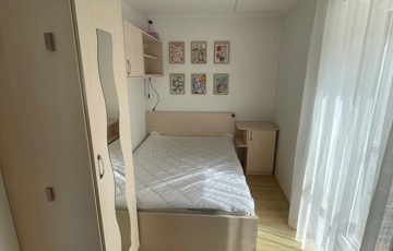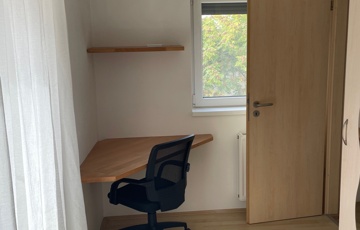 Erkélyes szoba (beépített szekrény és könyvespolc, franciaágy felnyitható, íróasztal, éjjeliszekrény)