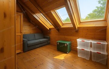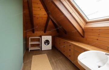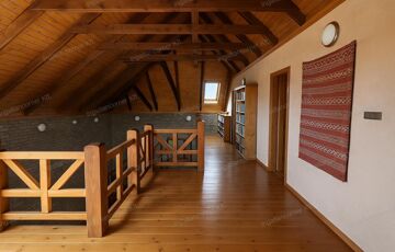 A ház belső tere varázslatos fa elemekkel és tágas galériával rendelkezik, amely különleges térélményt nyújt. A napfényes helyiségek és a természetközeli hangulat együttesen teremtik meg a tökéletes otthont mindazok számára, akik az egyedit, az igényeset és a szerethetőt keresik.