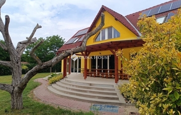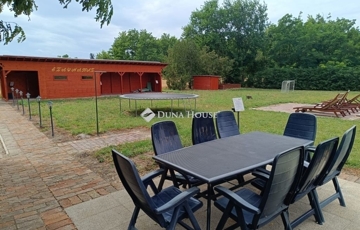 Többféle hasznosítási célra alkalmas, jelenleg panzióként működő Duna közeli, csendes, zöld környezetben lévő ingatlan eladó!A közel 3000 m2-en füvesített, gondozott telken elhelyezkedő kétszintes épület 2000-ben épült, azóta folyamatosan karban tartják, modernizálják. Az alsó szinten (309 m2) közösségi terek, 50 fő befogadására és étkeztetésére alkalmas konferencia terem hangulatos nyitott kandallóval, teljesen felszerelt konyha mosogatógéppel és 2 nagy hűtővel, vizesblokkok, wellness helyiségek és egy csendes, kertre néző 65 m2 fedett grill terasz található. Az emelten 8 db (2-3-4 ágyas) szoba, összesen 24 férőhely amely akár 30 főig bővíthető. Minden szobához külön fürdőszoba és légkondicionáló tartozik. Az ingatlan fűtését nagy teljesítményű gázkazán látja el, a tetőszerkezetre, szaunaházra 15 kw napelem és napkollektorok kerültek, igy ezek biztosítják a gyakorlatilag zéró külső villamos energia igényt.A parkosított kertben grillező, focipálya, petanque pálya, trambulin, finn szauna szolgálják a lakók kényelmét, szórakoztatását. A telken 12 autó számára gépkocsi beálló és kerékpár tárolók kerültek kialakításra. Az ingatlan az M6-os autópályán keresztül jól megközelíthető, bővíthető, a környék rengeteg látnivalót, élményt kínál (strand, termálvíz, horgászat, kirándulás, kastélyok...)A Vendégház, illetve egyéb célú üzemeltetéshez szükséges berendezések, eszközök és kellékek (pl. szauna kiegészítők, vendéglátós berendezések, masszázsfotelek, fitnesz padok, konyhai eszközök, biliárd asztal, trambulin, kerékpárok, stb.) további megegyezés tárgyát képezhetik.Ajánlom az ingatlant a következő hasznosítási célokra: panzió, közösségi ház, több generációs családi ház, rehabilitációs-, pihenő- és/vagy korosztályos otthon, oktatási/konferencia központ, cégképviselet, idősek otthona, gyerektáboroztatásÖn miben lát fantáziát? Hívjon még ma és nézzük meg!