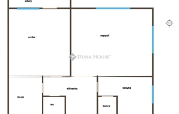 Az ingatlan jelenlegi elosztása: nappali + 1 hálószoba, de kis átalakítással nappali + 2 hálós otthonná alakítható, így ideális lehet kisebb családnak vagy akár befektetésnek is.