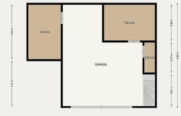 Az alagsort a házon belül lépcsőn, illetve az utcafront felől a garázskapun keresztül is megközelíthetjük. Itt 1 autóbeállót és további kettő helyiséget találunk, egy mosókonyhát, illetve egy tárolót, ahol a lakás gépészete kapott helyet. A lakás melegéről cirkó gondoskodik.